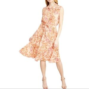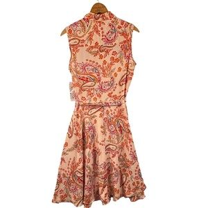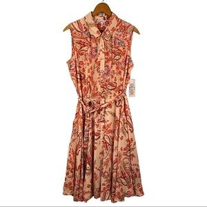 NWT women’s size 10 NANETTE LEPORE Peach Paisley Tie-Waist Sleeveless Button-Front Dress
