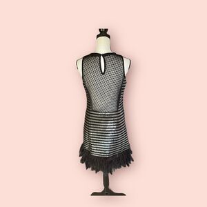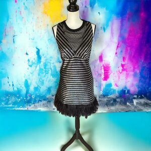 NANETTE LEPORE Revolve Silver Black Stripe Metallic Flapper Dress 10 L Couture