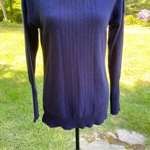 NANETTE LEPORE SWEATER COWL TURTLE NECK NAVY BLUE CASHMERE RIBBED TAG M fits S