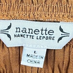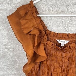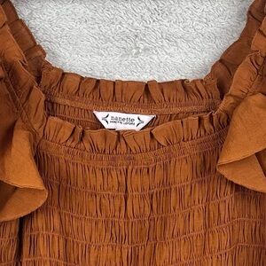NANETTE LEPORE Smocked Boho Tunic Peplum Ruffled Neck Sleeve Large Burnt Orange