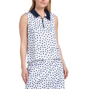 NANETTE LEPORE White/Navy Quarter Zip Front Polo Tank
