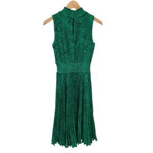 NANETTE LEPORE Women's Pleated Animal Print Smocked Mock Neck Midi Dress Green