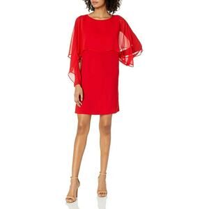 NANETTE LEPORE chiffon popover long sheer sleeve red shift dress Size 4 NEW