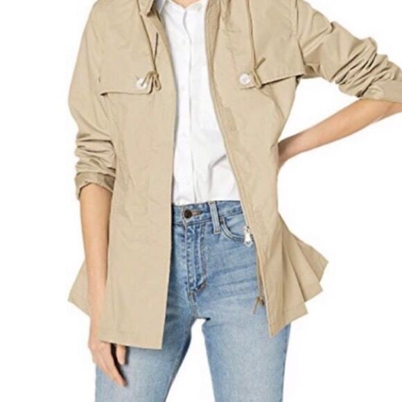 NANETTE LEPORE KHAKI HOODED UTILITY SPRING JACKET EXCELLENT CONDITION