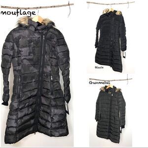 NANETTE Lepore Long Faux Fur Hooded Puffer Coat gunmetal Gray