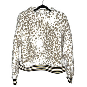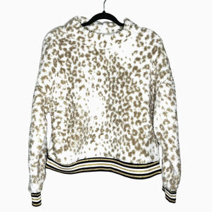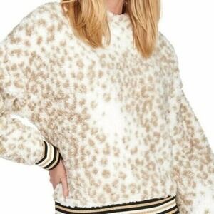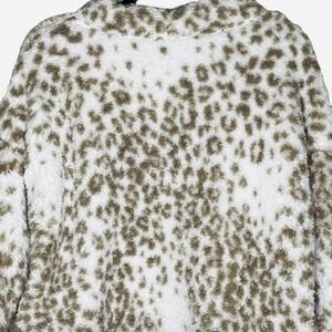 NANETTE Lepore Size Large Pullover Sweater Snow Leopard Fleece Plush Ted…