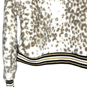 Nanette Lepore Size Large Pullover Sweater Snow Leopard Fleece Plush Teddy Bear