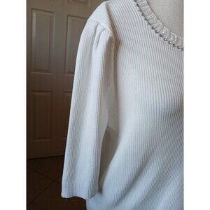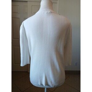 NANETTE Nanette Lepore Jewelneck White Ribbed Elbow Sleeve Sweater Large