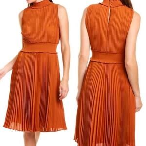 NANETTE nanette lepore Pleated Blouson Dress Rust Orange size 6