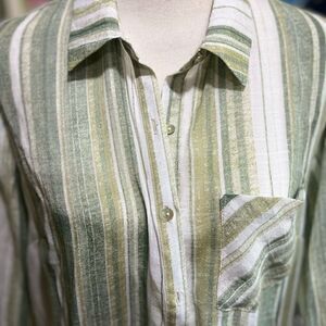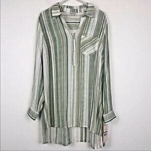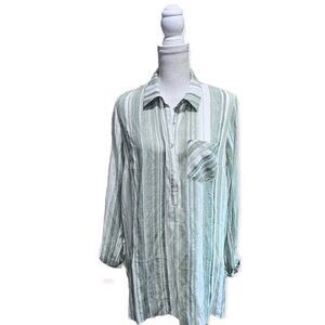 NANETTE LEPORE GREEN PRAIRIE STRIPED LONG SLEEVE TUNIC LOOSE SHIRT TOP LARGE NWT