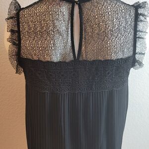 STUNNING- Nanette Lepore blouse, pleated all around with lace detail across the chest.