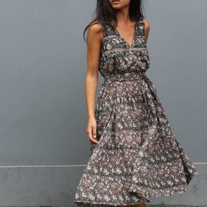 This sleeveless dress has pockets on the side seams, which makes it not only beautiful but also functional. Wrap the optional self-tie belt around the waist for a more fitted look, or leave the belt off for a looser fit that looks effortless and relaxed. Dress is sheer and gauzy. 100% cotton voile