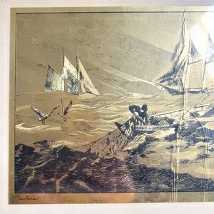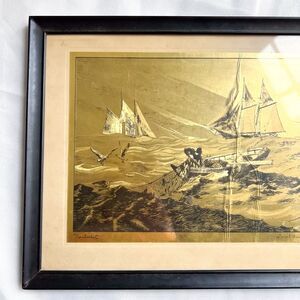 “NANTUCKET” Gold Foil Etching by Lionel Barrymore Black Frame Ready to Hang