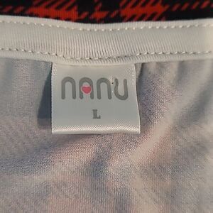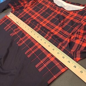 NANU Navy and Red Long Sleeve Soft Top with Plaid Print and Polka-dots