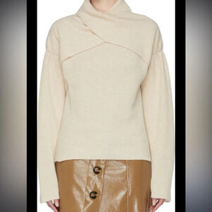 NANUSHKA | Korina | Merino Wool Blend | Layered Ribbed Knit Sweater | Cream | XS