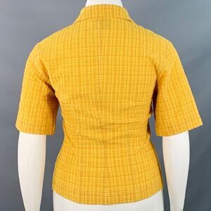 NANUSHKA Size L Yellow Brown Polyester Blend Plaid Short Sleeve Shirt