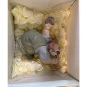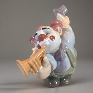 Up for sale is a charming NAO by Lladro porcelain figurine titled “Sing Along” (#1492). This whimsical piece features a playful clown holding a trumpet in one hand and tipping his top hat with the other. Handcrafted in Spain, this figurine captures the joyful spirit and fine detail NAO by Lladro is known for.