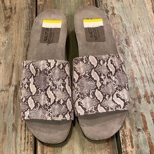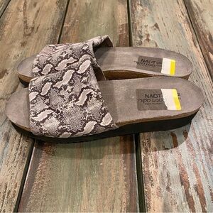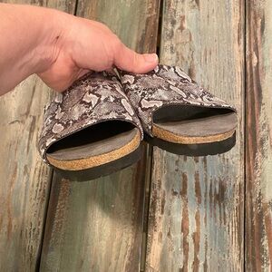 NAOT Alana Sandals Cork Comfort Slides Snakeskin Print Gray Women’s Sz 11