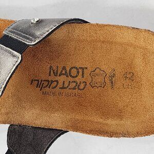 NAOT Ashley Silver Leather Rhinestones Low Wedge Slide Sandals