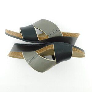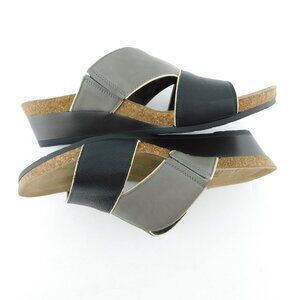 NAOT Black Gray Leather Slide Wedge Heel Sandals 11 / 42