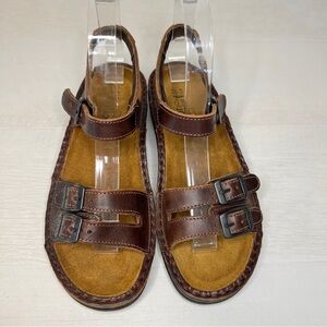 NAOT Brown Leather Buckle Ankle Strap Sandals