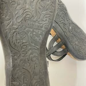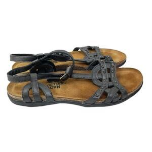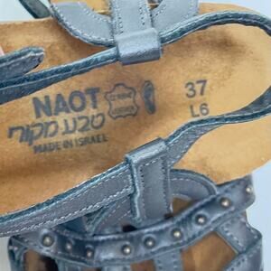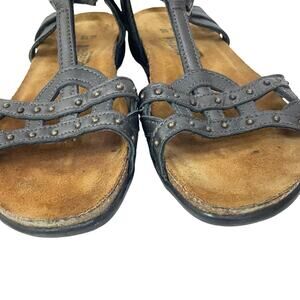 NAOT Elinor Size 6 Gunmetal Gray Studded T-Strap Leather Cork Comfort Sandals