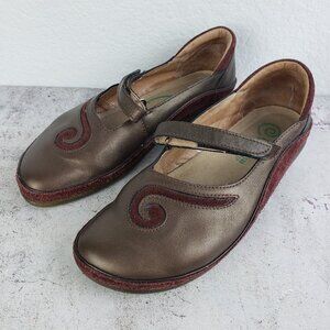 NAOT Israel Leather Comfort Shoes Mary Jane Metallic size 38 Lagenlook Hippie