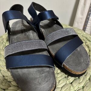 NAOT Kristinao P Blue Leather Silver Rhinestones Strappy Comfort Sandals NWOB