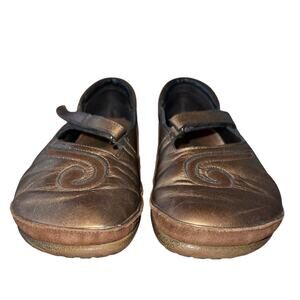 These shoes are in great condition and ready to provide you with all-day support. The bronze 'Matai' style with a swirl design adds a little fun to any outfit.