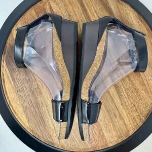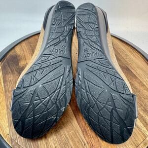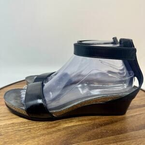 NAOT Pixie Black Leather Wedge Sandal Cork Sz EU 39 US 8.5 Adjust Strappy Ankle
