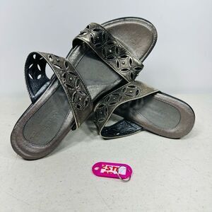 NAOT Strappy Slip On Wedge Sandals Womens Metallic Wedge Heel Cushioned Sz 39-8
