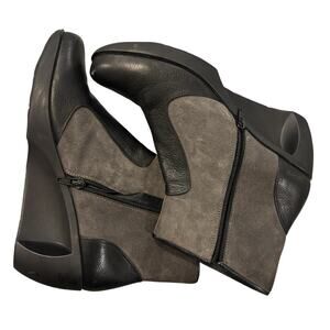 NAOT Women’s Black and Gray Leather and Suede Wedge Booties, NWIOB, EU Size 40, US 9.5