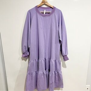 NAP Loungewear Dress * Color: Scampi/ Lavender/ Purple * Fabric: 96.5% Cotton, 3.5% Spandex * Crew neckline * Pullover style * Long puff/ pleated sleeves * Ribbed trim detail * Soft cotton fleece knit fabric * Tiered/ layered maxi length skirt * Loose, oversized silhouette * On seam pockets