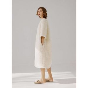 NAP Loungewear Teddy Fleece Cream fuzzy Midi Dress NWT size small loose fit