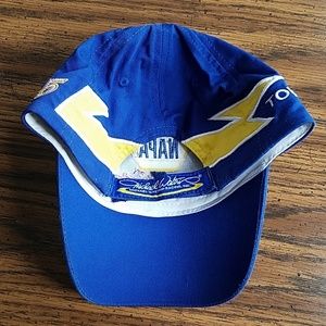 NAPA Racing Michael Waltrip Toyota #55 Hat in good pre-owned condition. Embroidered detail on the front, brim, sides and the back. Velcro closure. Minor fuzz/lint from storage. A little dirty on the inside along the white.