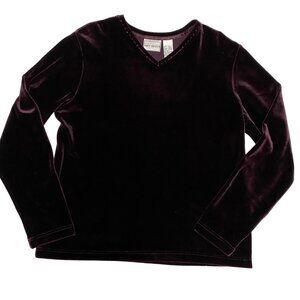 NAPA VALLEY Petites Burgundy Velvet Beaded V-Neck Top 90s Y2K Vintage PM