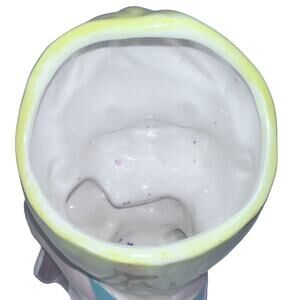 This charming vintage NAPCO head vase planter, model 6775, features an adorable volleyball boy with bright blue eyes, rosy cheeks and a playful expression. Crafted in Japan circa 1950-59, this 6"x4.5" planter is in excellent used condition with a small manufacturer’s paint skip on the ball. Perfect for holding small plants or as a decorative piece, this vase captures the joyful spirit of youth and sports.