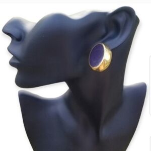 Beautiful Napier goldtone earrings with purple enamel detail. Earrings are large oval shaped design with stud and hinge backs. Earrings are stamped Napier on the backs.