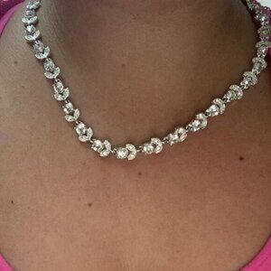 NAPIER Clear Rhinestone & Silver Tone Necklace 18”