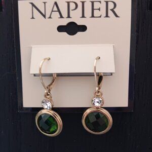ONLY **1** PAIR LEFT!!! NEW!!! NAPIER Contemporary Gold Green & Clear Crystal Drop Earrings**Gold Earrings have a Round Faceted Green Crystal with a Clear Crystal on top! Fabulous Earrings for the upcoming Holidays!**Earrings are 1.5" Long/Lever Back Posts**NEW ON HANG TAG!