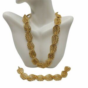 NAPIER Gold Tone Mid-Century Garland of Leaves Choker Necklace Bracelet RARE