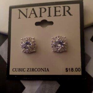 ONLY **1** PAIR LEFT!!! NEW!!! NAPIER Romantic Halo Silver Clear CZ Stone Stud Earrings**A Sparkling Round Clear CZ Stone in the middle surrounded by smaller Clear CZ Stones! Wear these Earrings Casual or Dressed Up! They would also be a Lovely Gift!**Earrings have Post Backs**NEW ON HANG TAG!