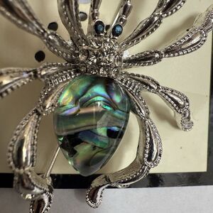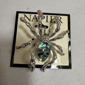 NAPIER Scary Silver Tone Spider Halloween Bug Art Glass Cabochon Pin New