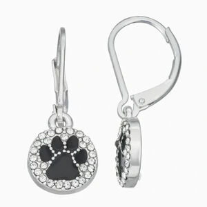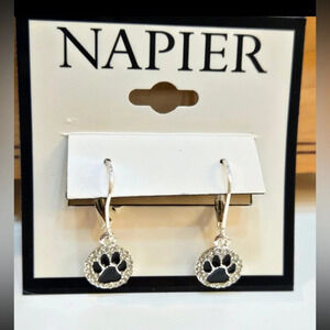 NAPIER Silver-Tone Black Cat Dog Kitten Kitty Puppy Paw Print Crystal Earrings NEW NWT