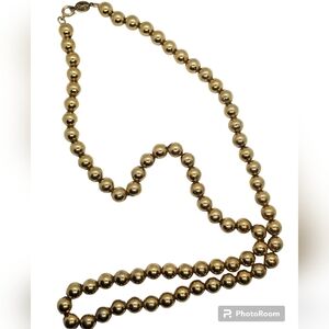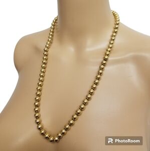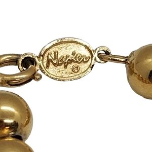 Beautiful vintage goldtoned beaded necklace by Napier. Necklace is made with goldplated metal beads and of excellent high quality. Necklace measures 24-3/4 inches in length. Necklace has Napier stamped charm on clasp. Great condition