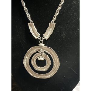 The NAPIER Vintage Bamboo Necklace is a rare silvertone runway piece that exudes elegance and sophistication. With a unique pendant shape and a length of 24 inches, this necklace is a bold statement accessory that adds a touch of fashion-forward style to any outfit. Made in the United States, this pendant necklace showcases the quality craftsmanship and design excellence that Napier is known for, making it a coveted piece for jewelry enthusiasts and fashionistas alike.