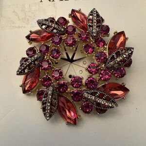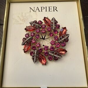 NAPIER Vintage Inspired Wreath Brooch Pin Enamel Rhinestones Pink Holiday New
