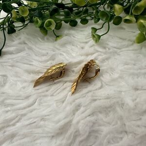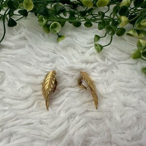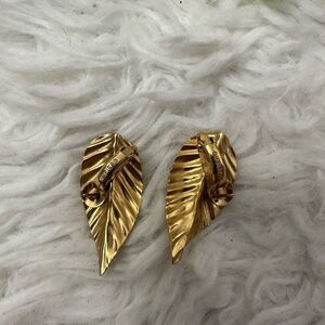 NAPIER Vintage gold Tone leaf Design Pattern Clip earrings