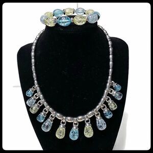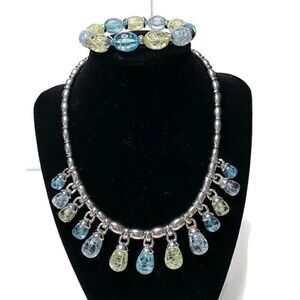 NAPIER Silver-Toned Beaded Necklace with Colored Hanging Beads with Bracelet