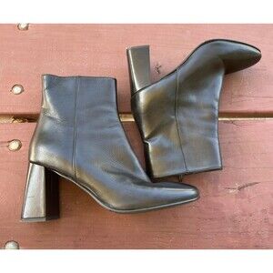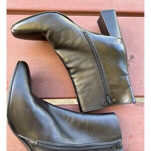 NAPOLEONI Women's Zip Block Heel Round Toe Boots Black Leather Size 40 US 9.5